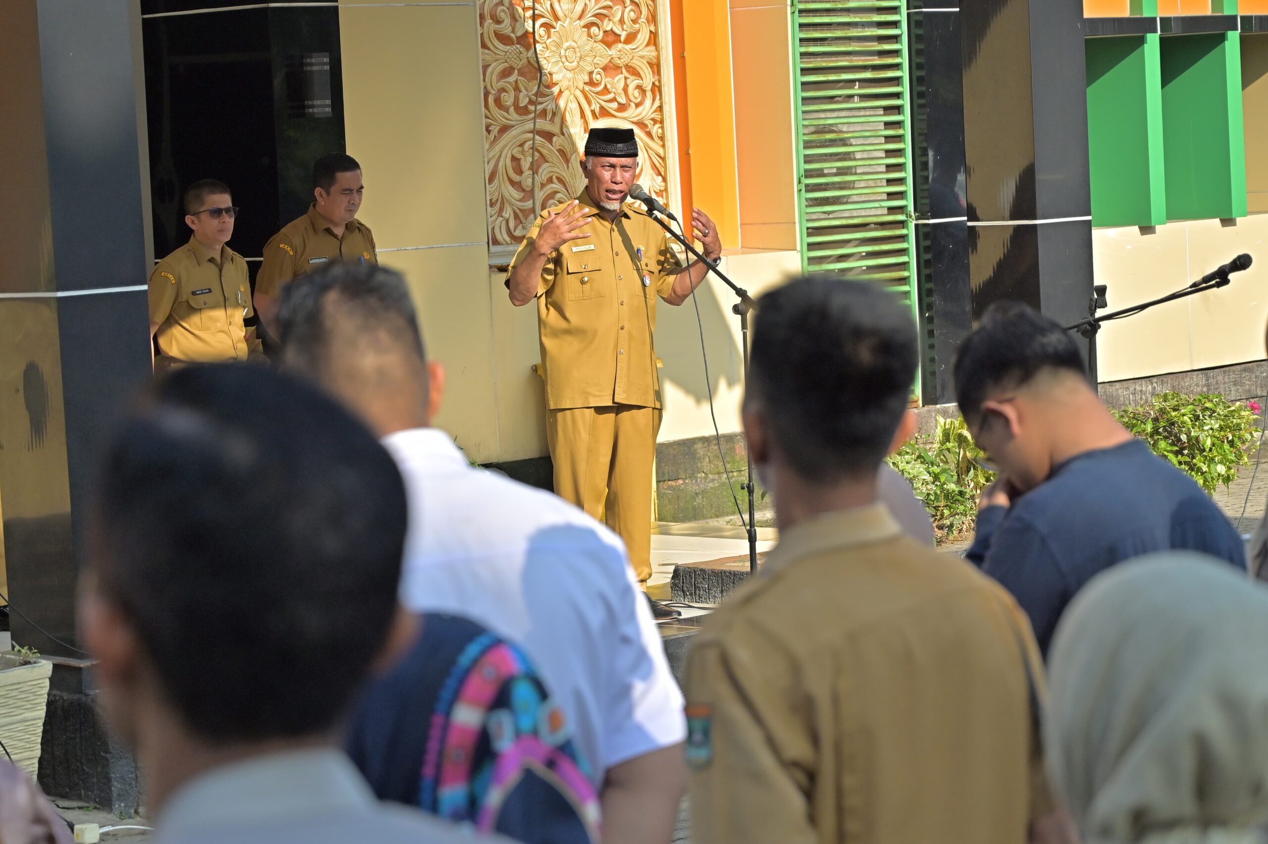 Padang – Gubernur Sumatera Barat (Sumbar), Mahyeldi Ansharullah, melakukan inspeksi mendadak (sidak) pascalibur Lebaran 1445 Hijriah di Kantor Dinas Koperasi dan UMKM serta Dinas Kesehatan Sumbar, Selasa (16/4/2024). Selain untuk memastikan pelayanan publik di Pemprov Sumbar kembali berjalan, Gubernur juga menegaskan tidak ada dispensasi terhadap pegawai yang tidak hadir tanpa keterangan pada hari pertama bekerja setelah libur Hari Raya Idulfithri.