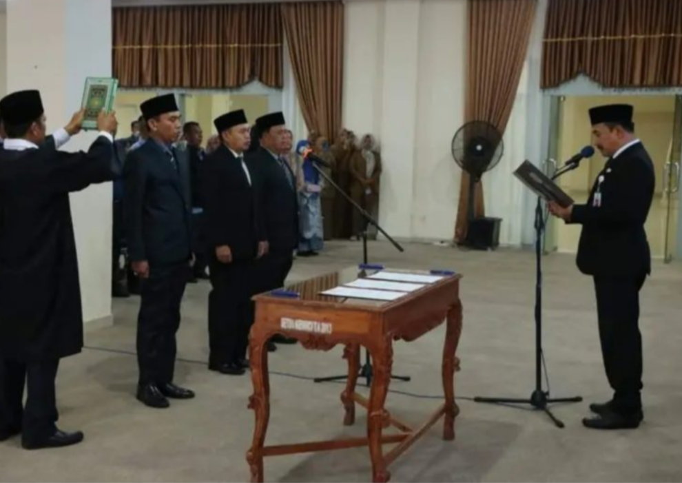 Kerinci – Pj. Bupati Kerinci Asraf, M.Si melantik dan mengambil sumpah jabatan tiga Direktur Perumda Air Minum Tirta Sakti Kerinci, di Ruang Pola Kantor Bupati Kerinci, Bukit Tengah. Senin (13/05/2024).