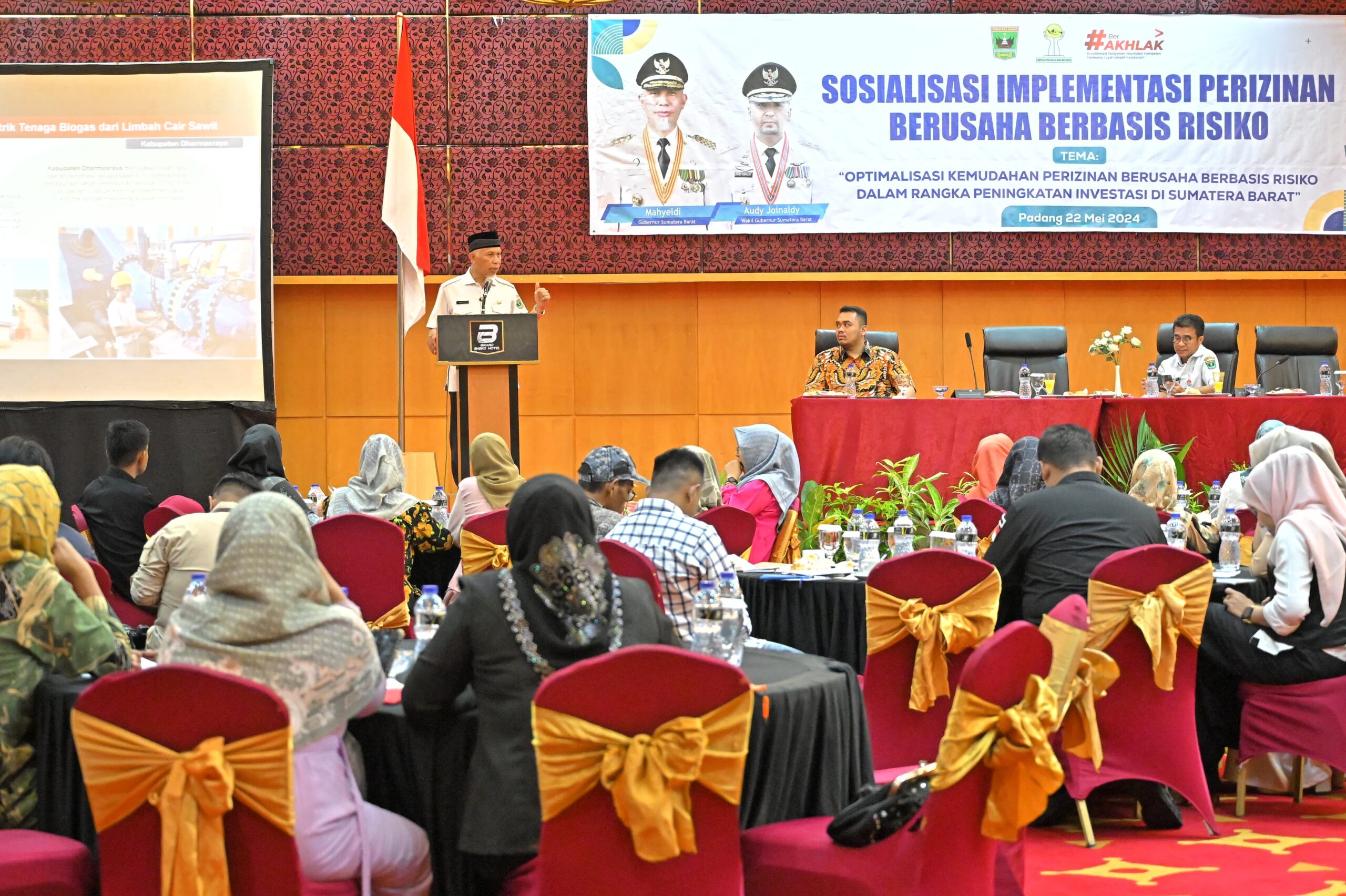Padang – Pemerintah Provinsi Sumatera Barat (Pemprov Sumbar) terus berupaya meningkatkan pengetahuan pelaku Usaha Mikro Kecil Menengah (UMKM) agar semakin eksis dalam mengembangkan usaha. Hal itu disampaikan Gubernur Sumbar, Mahyeldi Ansharullah, saat membuka Sosialisasi Implementasi Perizinan Berusaha Berbasis Risiko di Hotel Basko Padang, Rabu (22/05/2024).
