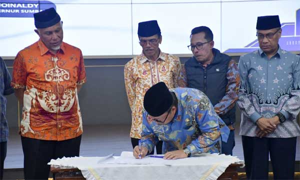 “Kelanjutan jalan tol ini dari Sicincin-Bukittinggi-50 Kota,” ujar Gubernur Sumbar, Mahyeldi Ansharullah usai tandatangani komitmen bersama, di Auditorium Gubernuran, Jumat (24/5).