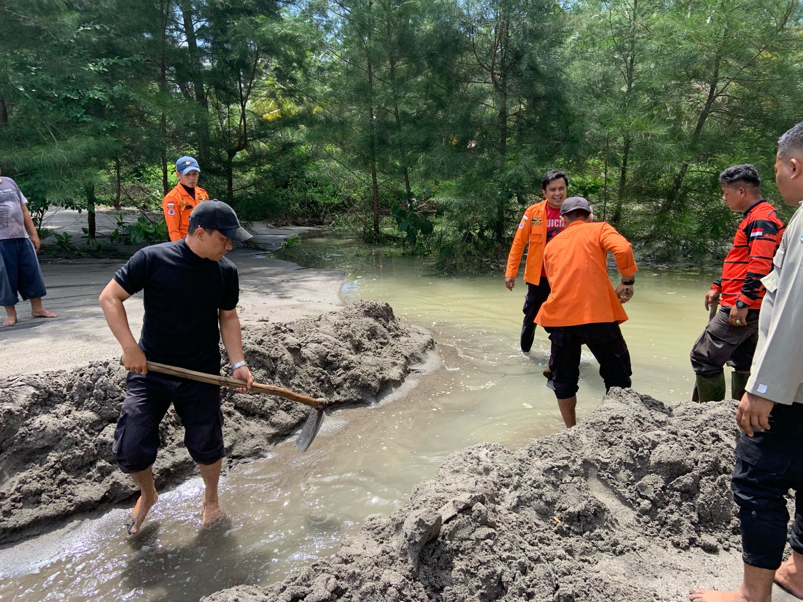 Untuk penanganan bencana banjir rob tersebut, salahsatunya dengan membuka aliran yang tertutup di sekitar Muara di Pasir Baru dan Sungai Paku.