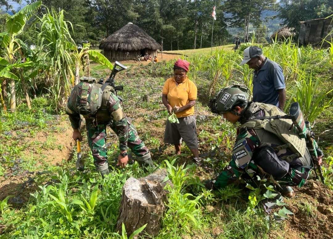 Kabupaten Puncak, fajarharapan.id – Untuk meningkatkan produktivitas lahan kosong agar memiliki hasil bumi guna untuk meningkatkan perekonomian masyarakat, Satgas Pamtas Mobile Yonif 323/BP Pos Gome membagikan bibit tanaman sayur sawi dan kangkung serta mengajak warga untuk bercocok tanam di Kampung Jenggernok, Distrik Gome, Kabupaten Puncak, Papua, Rabu (05/06/2024).
