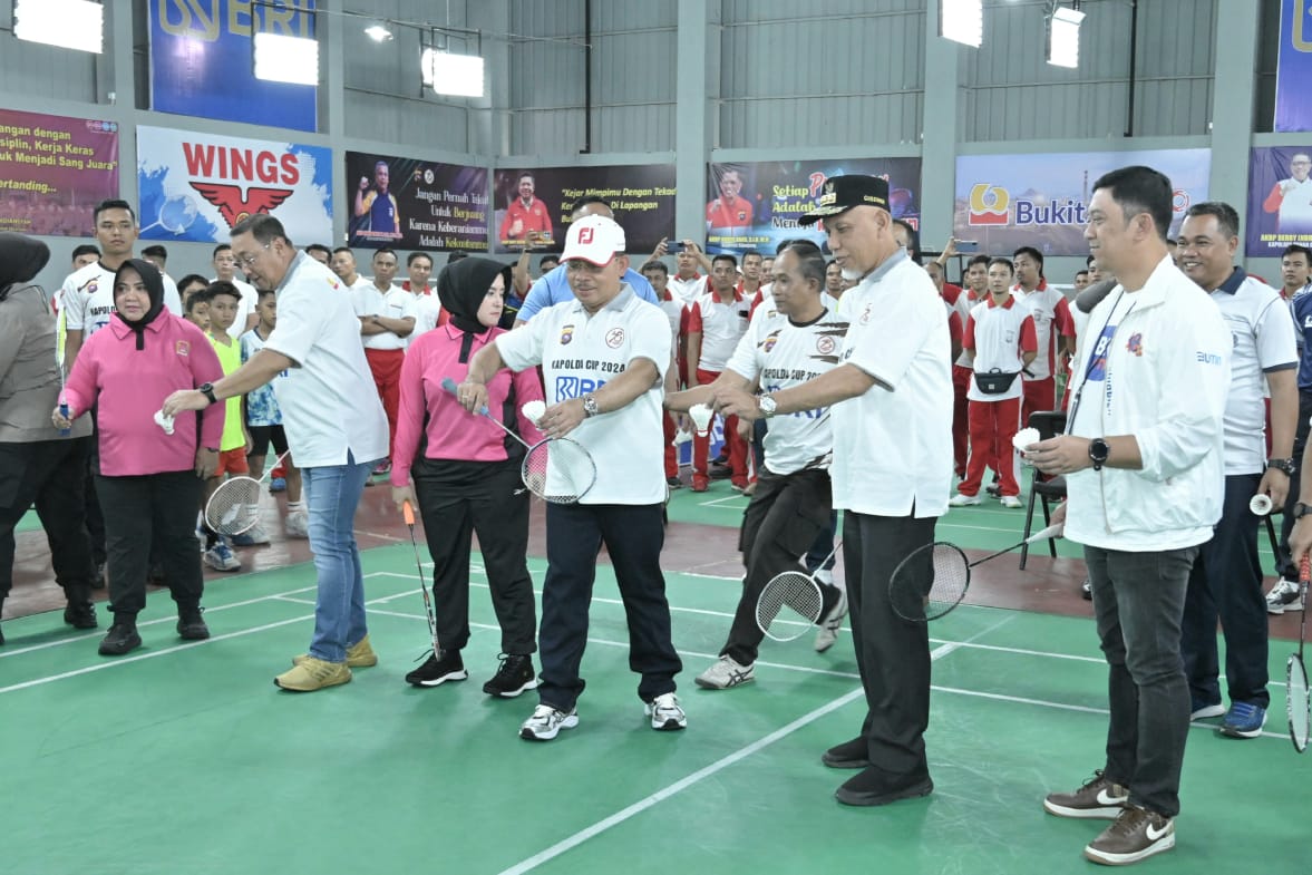 Padang – Gubenur Sumatera Barat (Sumbar), Mahyeldi Ansharullah, menghadiri Pembukaan Kejuaraan Bulu Tangkis Kapolda Cup Sumbar 2024, yang dibuka oleh Kapolda Sumbar, Irjen Pol Suharyono di Hall PB Polda Sumbar, Rabu (19/06/2024). Iven tersebut merupakan bagian dari rangkaian peringatan HUT Bhayangkara yang jatuh pada 1 Juli 2024 mendatang.