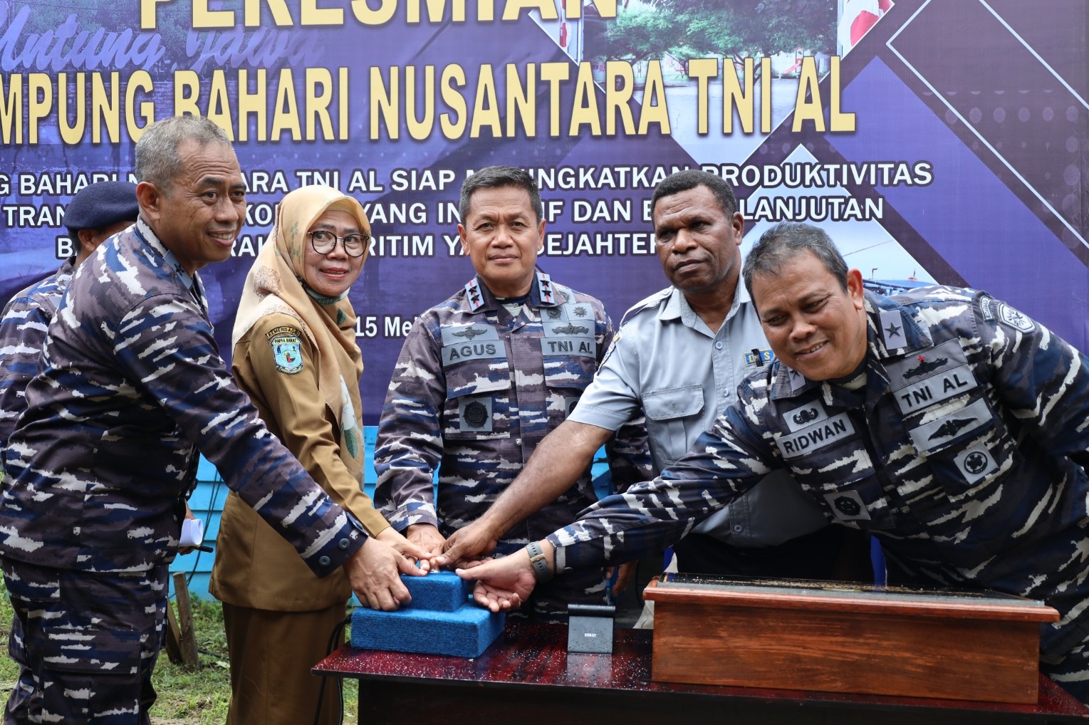 Sorong, fajarharapan.id – Panglima Komando Armada III (Pangkoarmada III) Laksamana Muda TNI Agus Hariadi, M. Han, yang didampingi Pejabat Utama Koarmada III, perwakilan unsur Forkopimda Kab Sorong serta Pengurus Jalasenastri Armada III, meresmikan Kampung Bahari Nusantara (KBN) yang berada Kelurahan Katinim, Distrik Salawati, Kab. Sorong Papua Barat Daya. Adapun peresmian tersebut mengangkat tema ‘Kampung Bahari Nusantara TNI Angkatan Laut Siap Meningkatkan Produktivitas untuk Transformasi Ekonomi yang Inklusif dan Berkelanjutan bagi Masyarakat Maritim yang Sejahtera’.Senin (15/05/23).