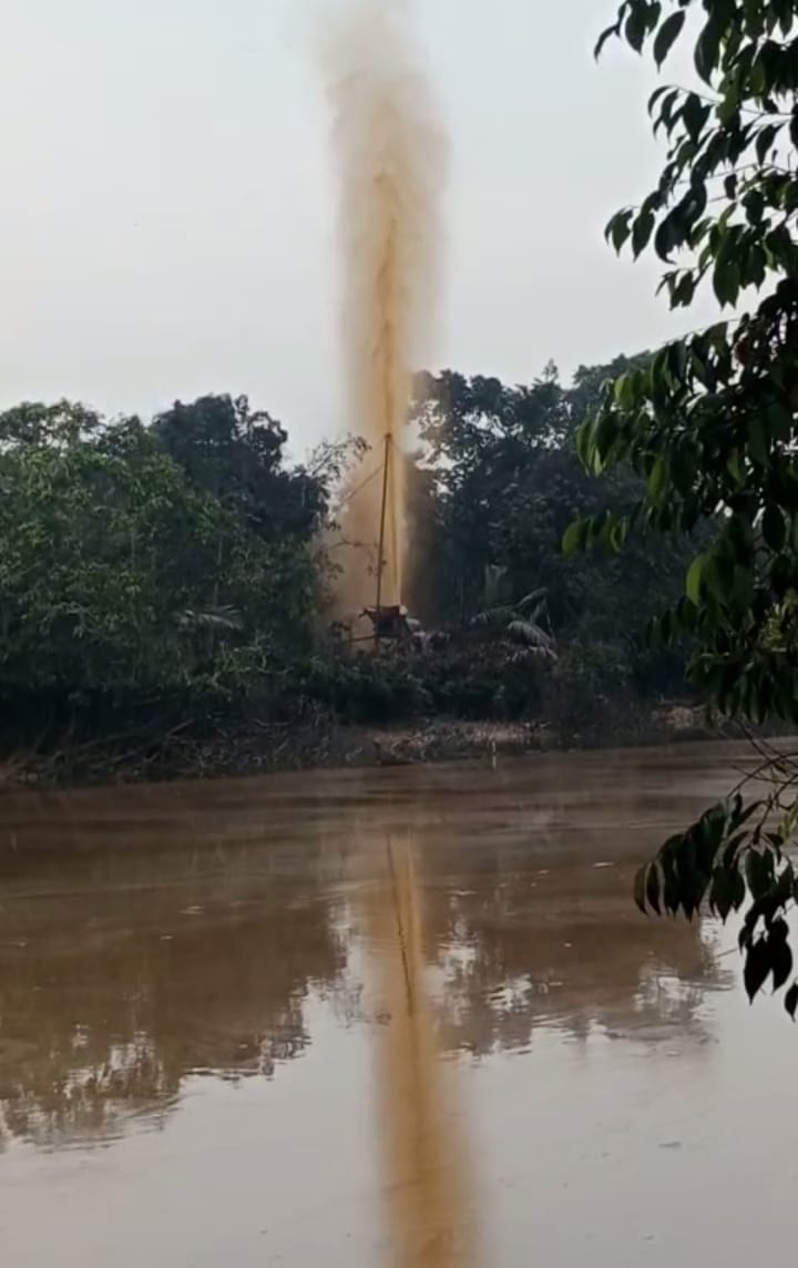 Muba, fajarharapan.id – Sumur Bor illegal diduga milik insial IW oknum kepala Desa di Kecamatan Sungai Lilin Kabupaten Musi Banyuasin, Sabtu (23/06/2024) sekitar pukul 10.00 Wib mengeluarkan minyak dari perut bumi hingga tidak dapat teratasi dan mencemari sungai Parung anak sungai Lilin.