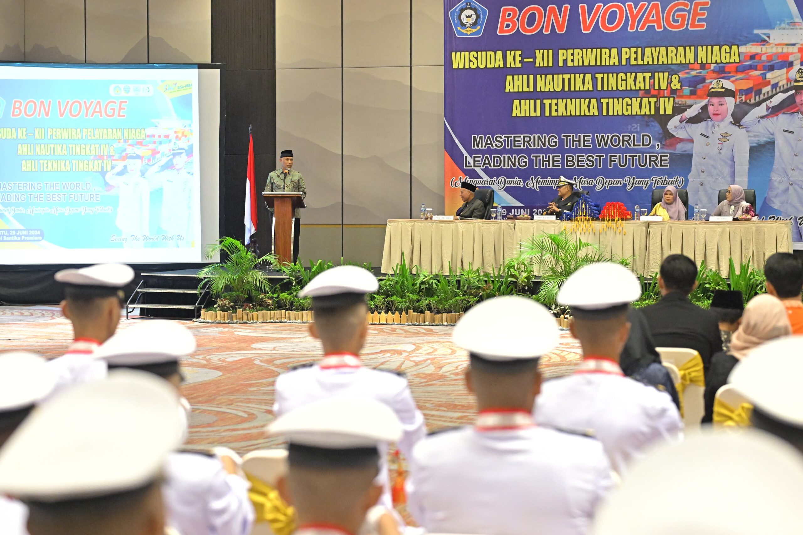 Padang – Gubernur Sumatera Barat (Sumbar) Mahyeldi Ansharullah, mengapresiasi konsistensi Sekolah Menengah Kejuruan (SMK) Pelayaran Padang dalam menyelenggarakan pendidikan khusus pelayaran di Sumbar. Apresiasi itu disampaikan saat berlangsungnya Wisuda (Bon Voyage) XII Perwira Kapal Niaga Ahli Nautika Tingkat IV (ANT-IV) dan Ahli Teknika Tingkat IV (ATT-IV) SMK Pelayaran Padang Tahun 2024 di Hotel Santika, Sabtu (29/06/2024).