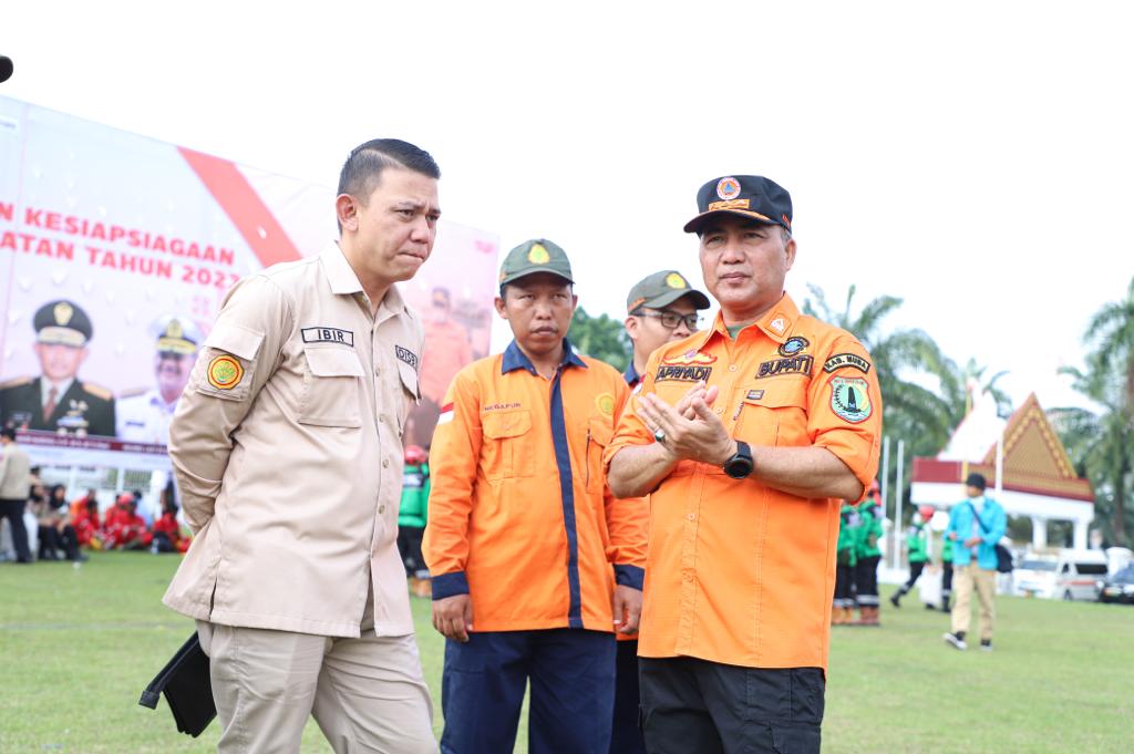 Kesiapsiagaan Bencana Tahun 2023 Pj Bupati Apriyadi Mahmud turut didampingi Kepala BPBD Muba Pathi Ridwan, Kasat Pol PP Erdian Syahri, Kadisbun Akhmad Toyibir, Kabid Komunikasi Publik Kominfo Yettria, dan Plt Kabag Protokol dan Dokumentasi Pimpinan Rangga Perdana Putera. (Rusdian)
