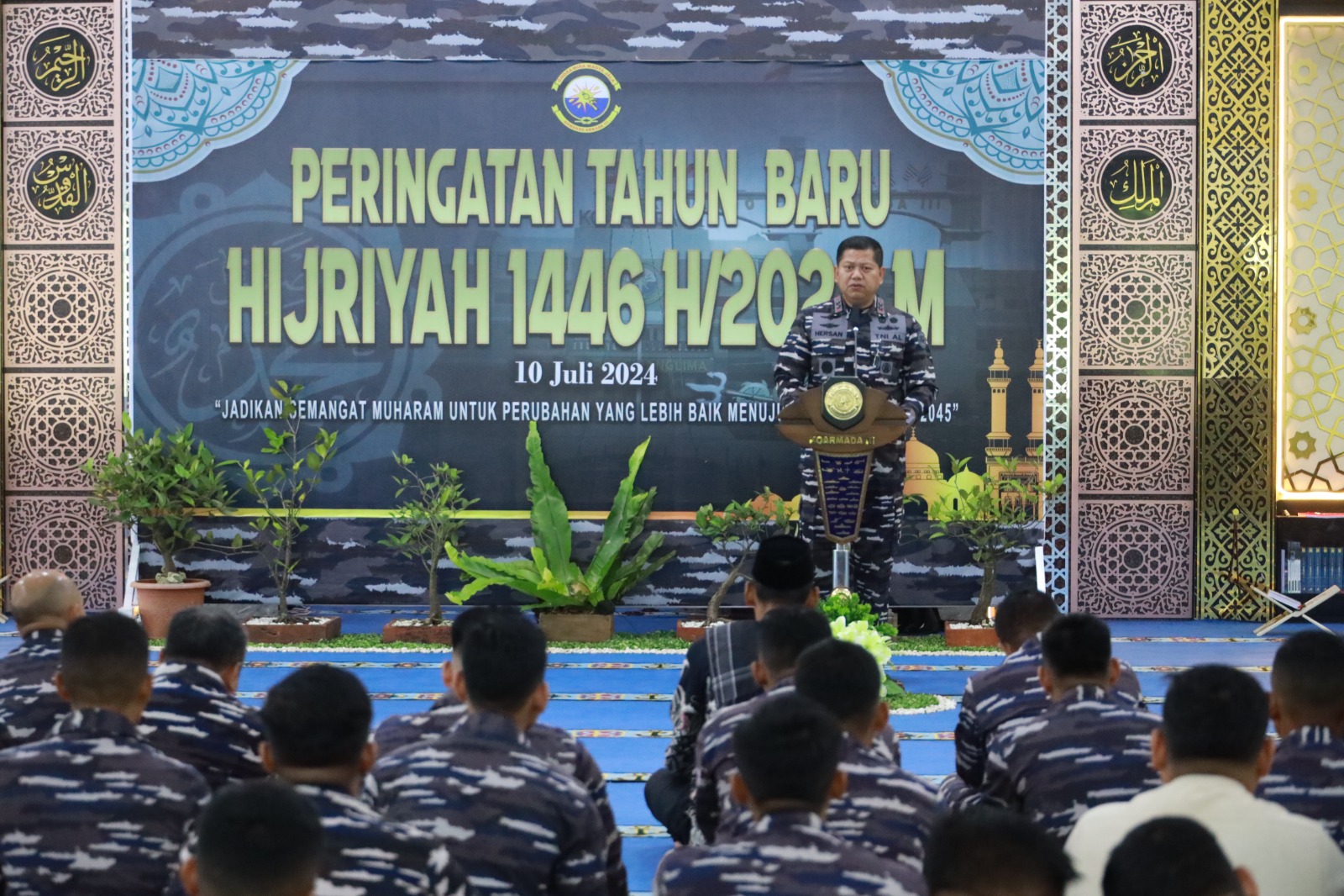 Dalam sambutannya Pangkoarmada III menyampaikan bahwa peristiwa Hijrahnya Nabi Muhammad SAW, mengajarkan kepada kita bahwa hijrah tidak hanya bermakna perpindahan secara fisik belaka tetapi juga merupakan upaya perpindahan yang menyeluruh, baik fisik maupun mental seseorang menuju kehidupan yang lebih baik dalam mencari ridho Allah SWT.