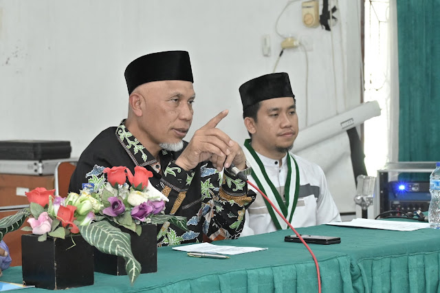 “Hari ini saya merasa berbahagia dan bangga bisa hadir bersama ananda para generasi muda yang memiliki akhlak, beriman, dan bertaqwa kepada Allah SWT. Ananda sekalian adalah para pemimpin di masa yang akan datang,” kata Gubernur Mahyeldi dalam kegiatan yang mengusung tema ‘Revitalisasi Peran Mahasiswa Muslim Sebagai Lokomotif Pembangun Nagari’ tersebut.