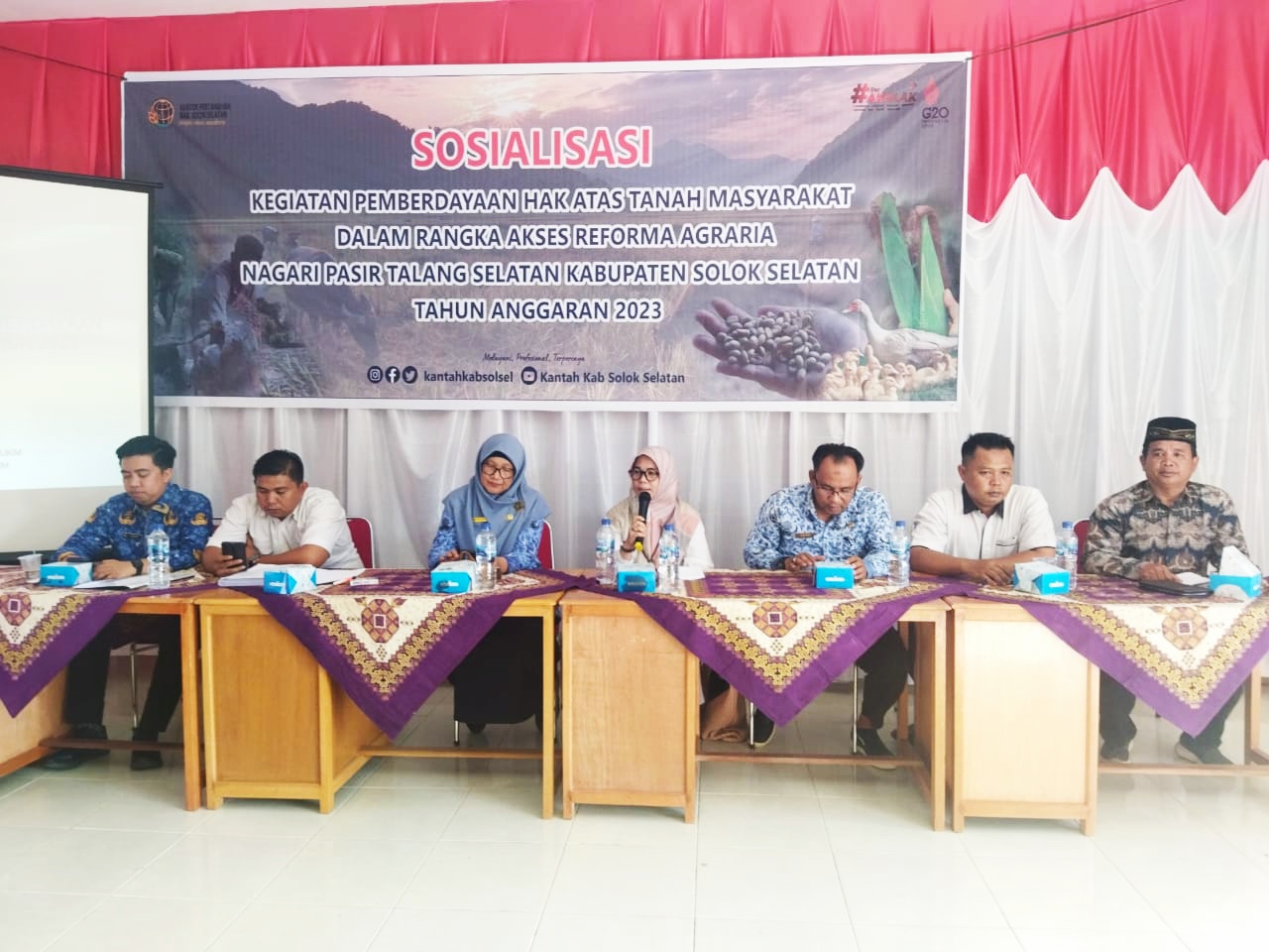 Hadir pada acara sosialisasi itu Badan Pertanahan Nasional (BPN) Solok Selatan yang diwakili oleh Fadriadi Hamid dan anggota, Kepala Dinas Pertanian Solok Selatan Nurhayati merangkap sebagai Narasumber, Kabid UKM Koperindag Solok Selatan Azizah Mutia, Wali Nagari Pasir Talang Selatan Fetri, ketua Bamus Hendrivon, Sekna Riki Suriandi.