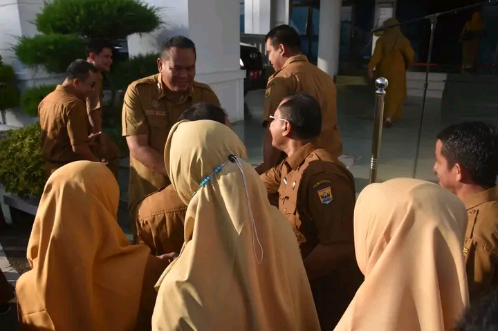 Usai memimpin Apel, dilanjutkan dengan saling bersalam-salaman antara ASN dan Non ASN yang hadir kepada Sekda Yota Balad.