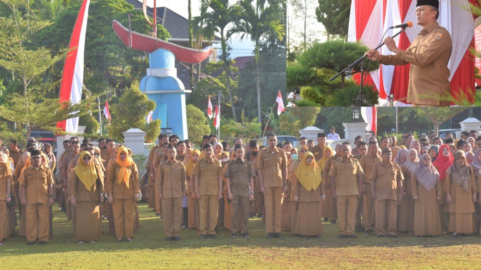 Dalam sambutannya, Pj.Roberia masih menjelaskan tentang tugas profesi ASN berpedoman kepada Undang-Undang Nomor 20 Tahun 2023 tentang Aparatur Sipil Negara. Juga telah mengalami sejumlah perubahan khususnya dalam Pasal 3 menyatakan nilai-nilai dasar ASN “BerAKHLAK” dengan semboyan “Bangga Melayani Bangsa”.