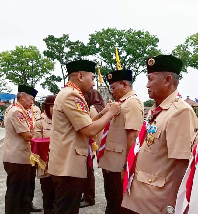 Kota Bukittinggi – Ketua Kwartir Cabang (Kakwarcab) 16 Gerakan Pramuka Kota Pariaman Hendri, menerima Tanda Penghargaan Lencana DARMA BAKTI dari Kwartir Nasional (Kwarnas) Gerakan Pramuka.