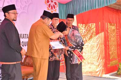 Pantauan AMC, orang no 1 di Agam tersebut menyerahkan secara simbolis ijazah dan memasangkan medali kepada 3 perwakilan santri yang memperoleh nilai terbaik.