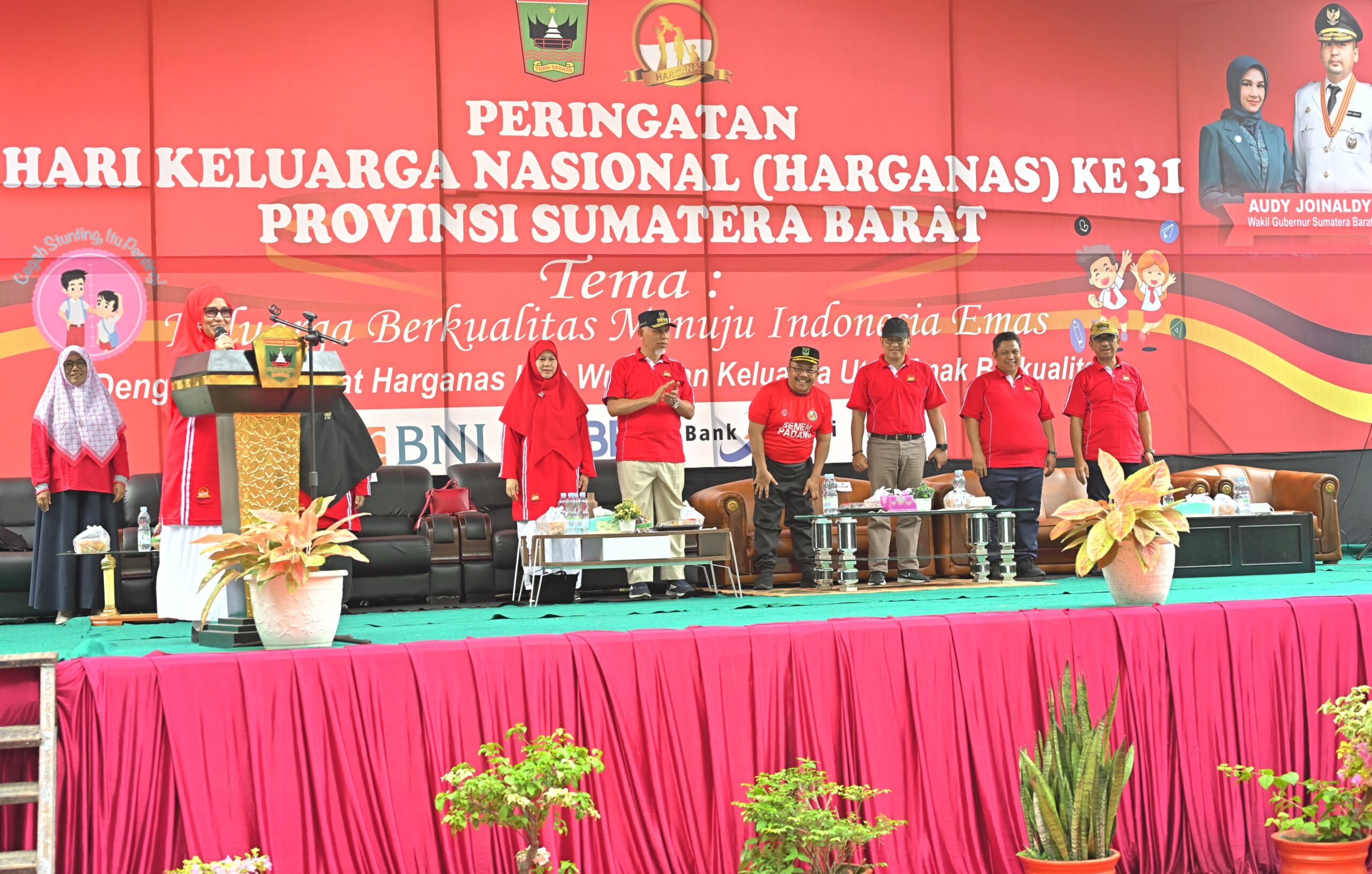 “Momentum Peringatan Harganas ini menjadi penting untuk memperhatikan penguatan ketahanan keluarga, dalam pencapaian program pembangunan keluarga, kependudukan, kelurga berencana, dan percepatan penurunan stunting,” kata Mahyeldi dalam sambutannya.