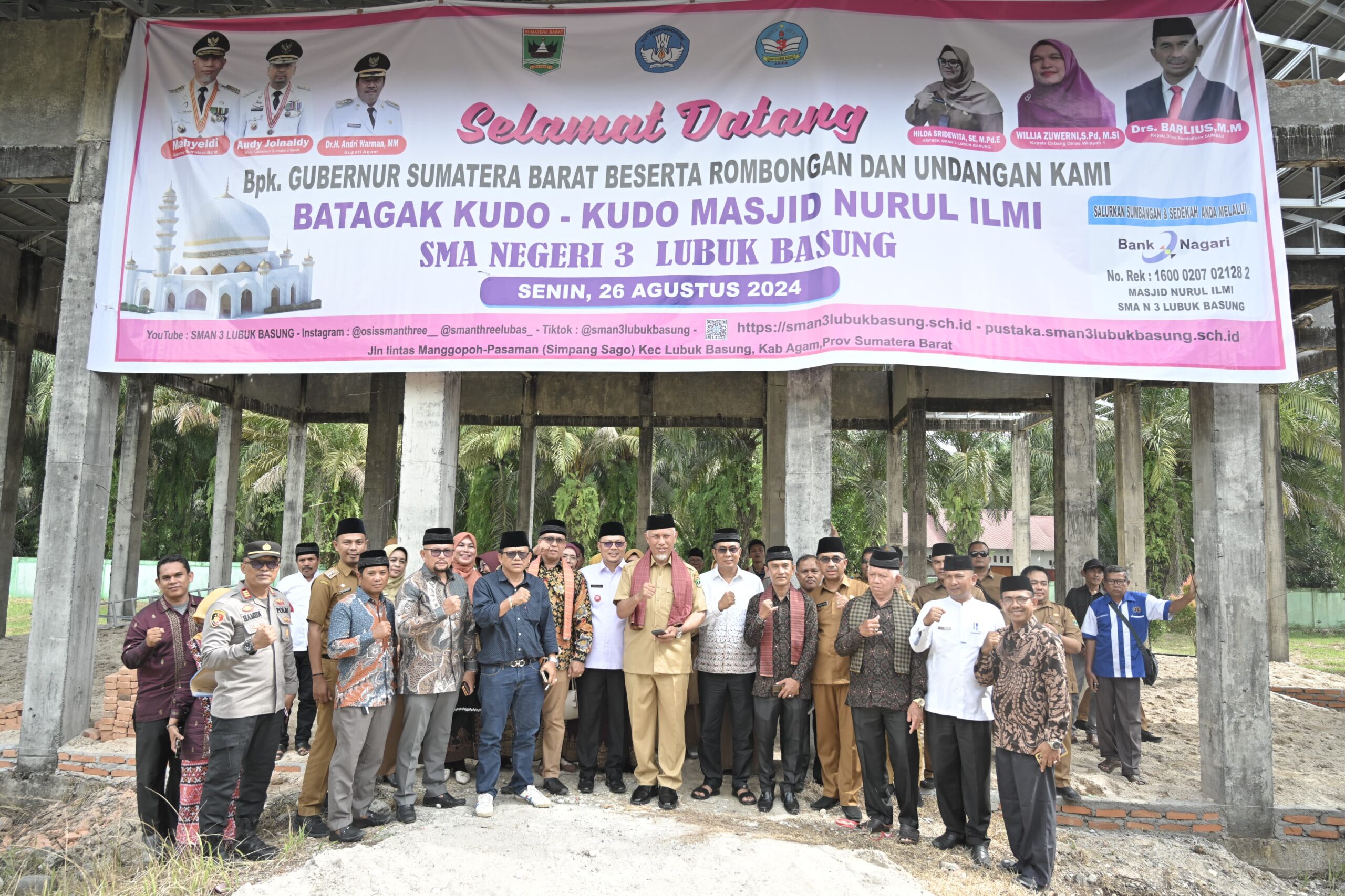 Terkait prosesi mendirikan Kudo-Kudo Masjid Nurul Ilmi di SMAN 3 Lubuk Basung sendiri, Mahyeldi mengajak seluruh pihak agar turut serta membersamai pembangunannya. Sehingga, masjid tersebut lekas selesai dan segera bisa difungsikan oleh pelajar dan masyarakat di sekitar sekolah.