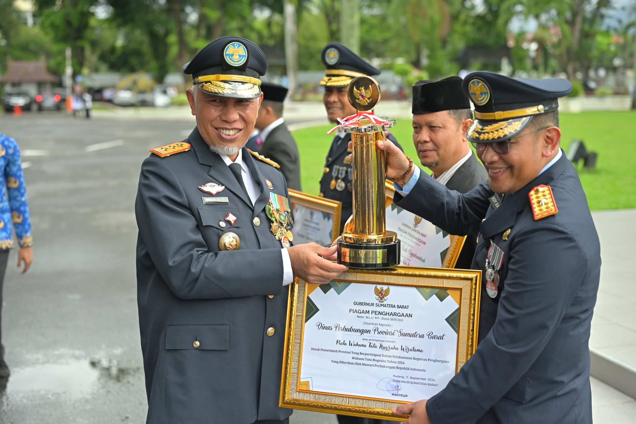 Padang – Gubernur Sumatera Barat (Sumbar), Mahyeldi Ansharullah, bertindak selaku Inspektur Upacara (irup) pada peringatan Hari Perhubungan Nasional Tahun 2024. Di samping membacakan amanat Menteri Perhubungan (Menhub) RI, Gubernur juga menyampaikan pentingnya seluruh insan perhubungan untuk terus meningkatkan kualitas pelayanan transportasi di Sumbar.