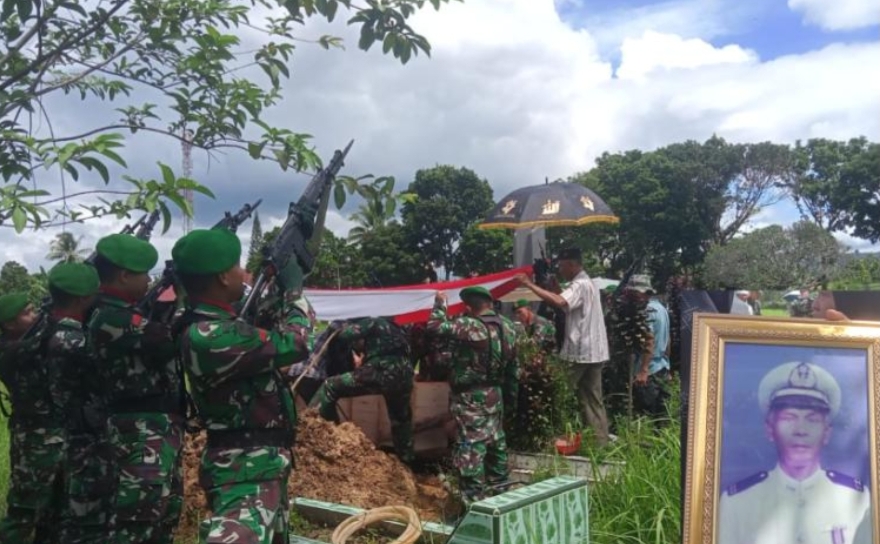 Disaat jenazah akan dimasukkan ke liang lahat, di bawah bentangan bendera merah putih, secara bersamaan dilepas dengan tembakan salvo oleh regu tembak Bataliyon 131 Braja Sakti.