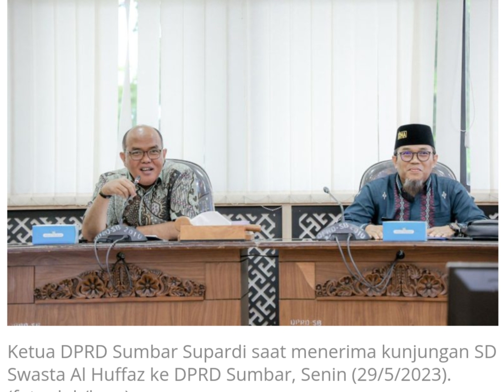 Ketua DPRD Sumbar Supardi Terima Kunjungan SD Swasta Al Huffaz Payakumbuh