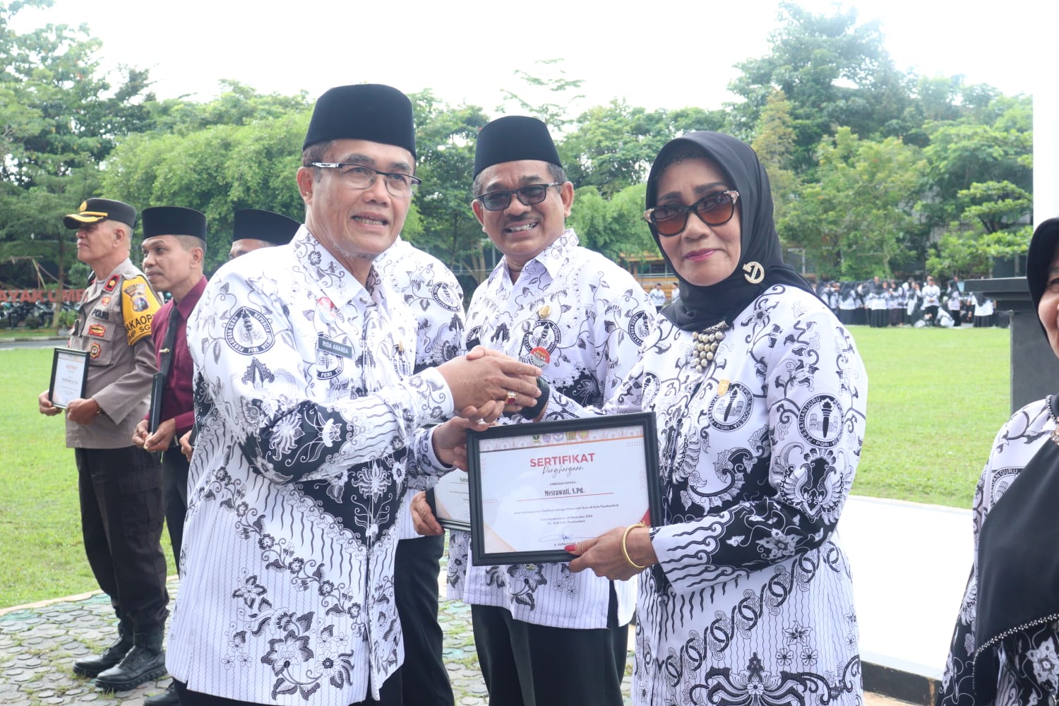 Payakumbuh, fajarharapan.id – Berlangsung khidmat, Upacara Peringatan Hari Guru Nasional tahun 2024 digelar di Halaman Balai Kota Payakumbuh, Senin (25/11/2024).
