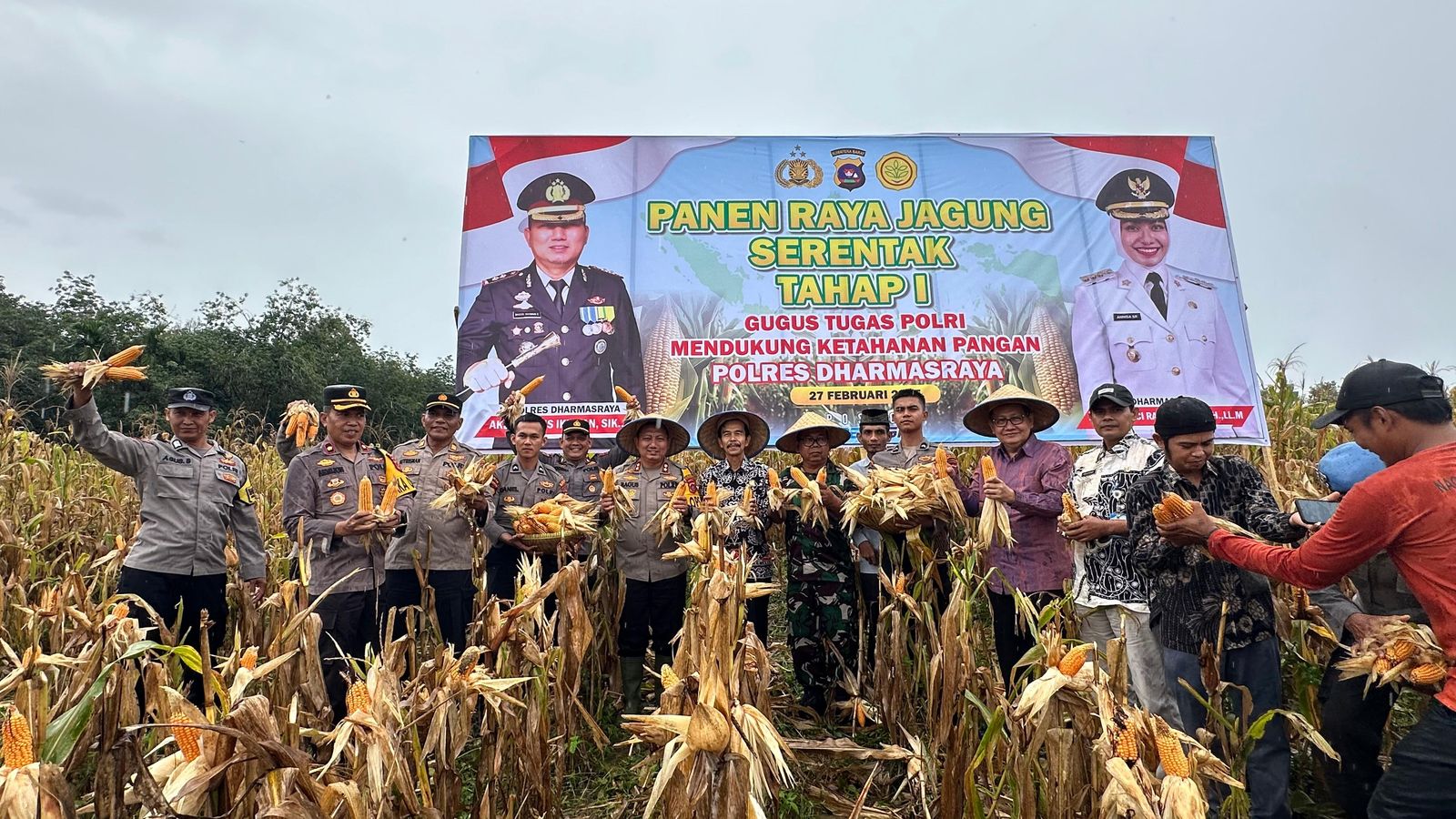 Dharmasraya, fajarharapan.id — Polres Dharmasraya, Polda Sumbar, menggelar panen jagung serentak tahap pertama sebagai langkah nyata mendukung program ketahanan pangan nasional. Acara ini berlangsung di lahan Kelompok Tani Seniman, Jorong Kampung Dondan, Nagari Gunung Medan, Kecamatan Sitiung, pada Kamis (27/2) pukul 10.00 WIB.