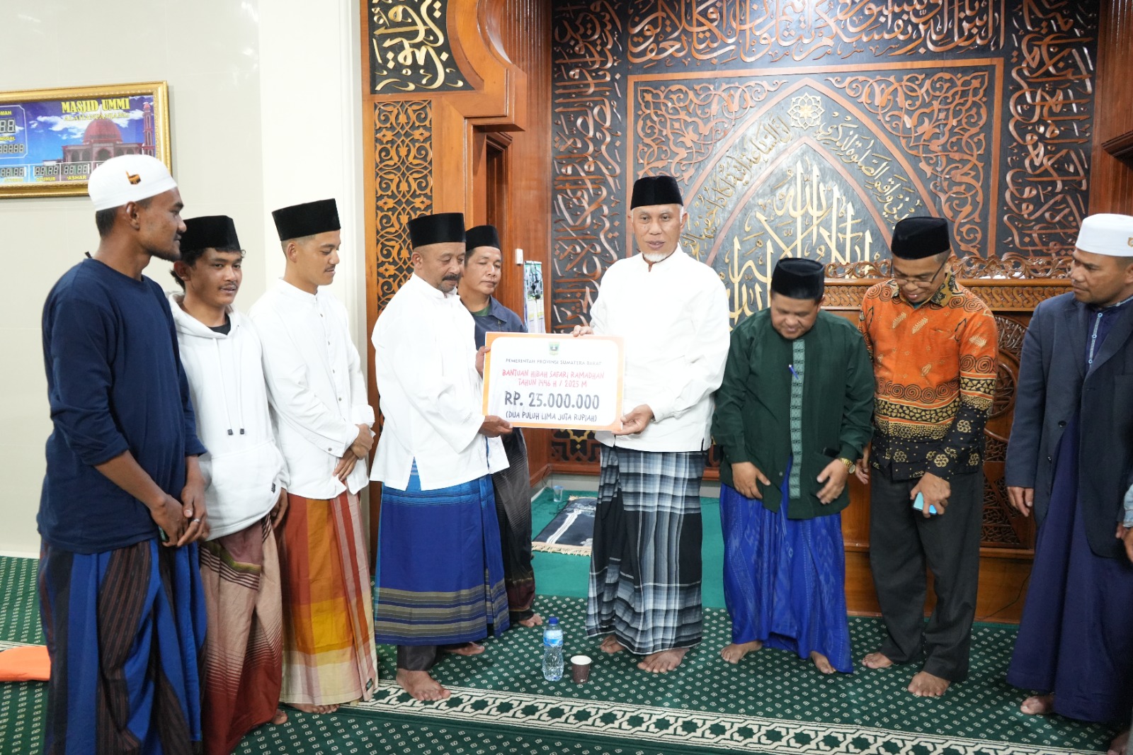 Dalam kesempatan tersebut, Gubernur Mahyeldi juga menyerahkan bantuan untuk mendukung aktivitas keagamaan dan pembangunan di Masjid Ummi sebesar Rp25 juta. Bantuan tersebut diharapkan dapat memperlancar aktivitas ibadah dan program pembinaan remaja masjid.