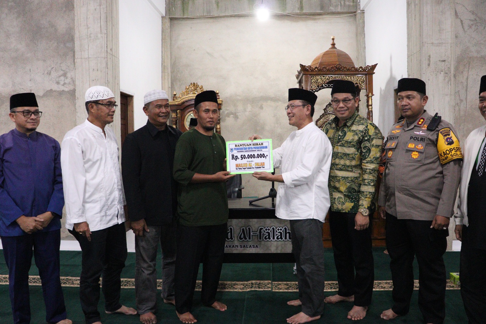 “Salah satunya dengan memberikan bantuan hibah bagi Masjid Al-Falah ini. Semoga bantuan ini sedikit membantu prmbangunan Masjid kita ini,” ungkapnya.