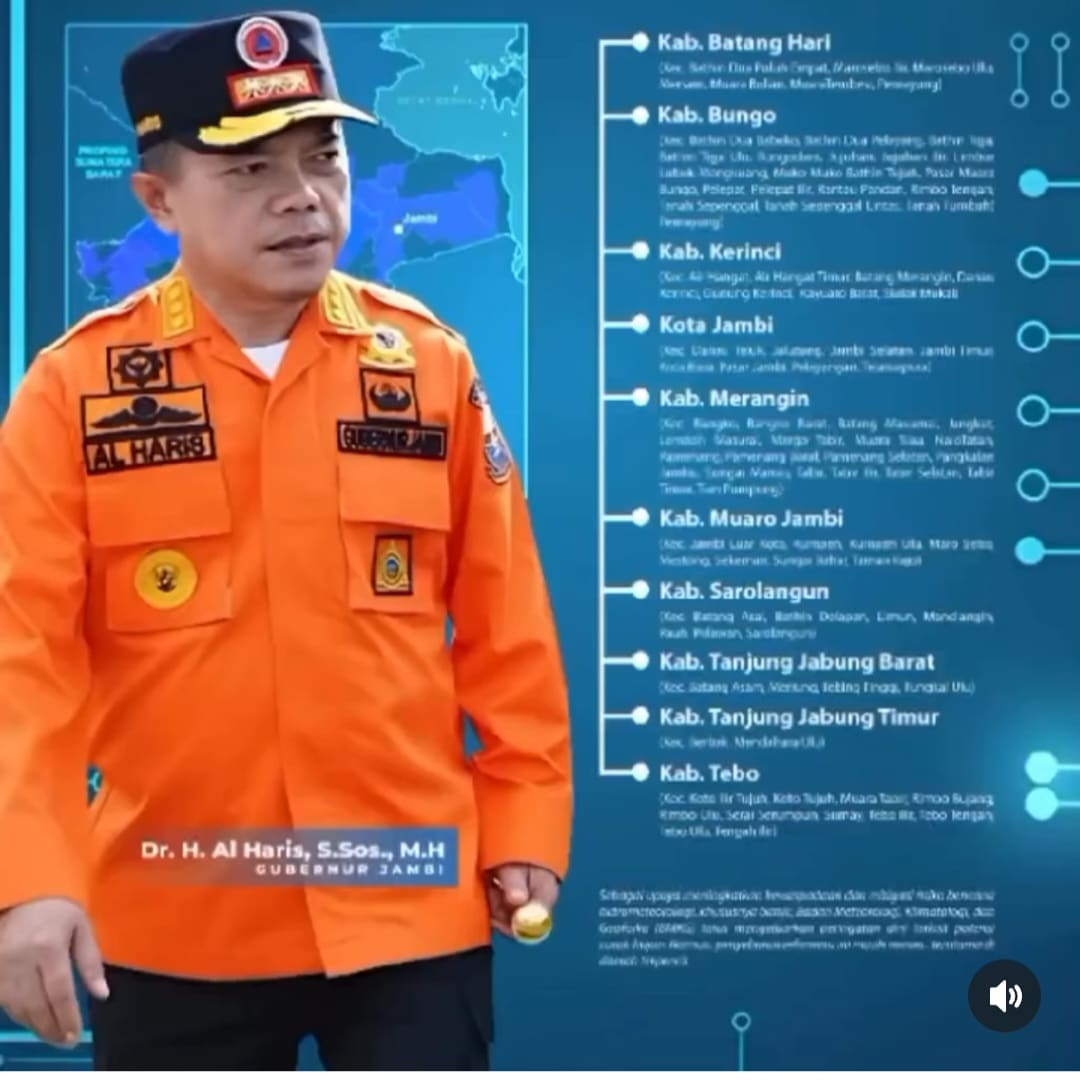 Kepala Dinas Kominfo Provinsi Jambi Ariansyah menyebutkan, bahwa Gubernur Al Haris menyampaikan kepada seluruh jajaran Pemerintah Provinsi/Kabupaten Kota dan seluruh stake holder dan maayarakat untuk dapat meningkatkan kewaspadaan dan mitigasi risiko bencana hidrometeorologi