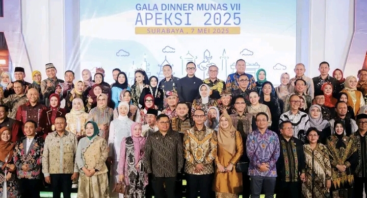 Surabaya – Gala Dinner yang menjadi pembuka resmi rangkaian Musyawarah Nasional (Munas) VII Asosiasi Pemerintah Kota Seluruh Indonesia (APEKSI) digelar megah di Kota Surabaya, Jawa Timur, pada Rabu malam (7/5/2025).