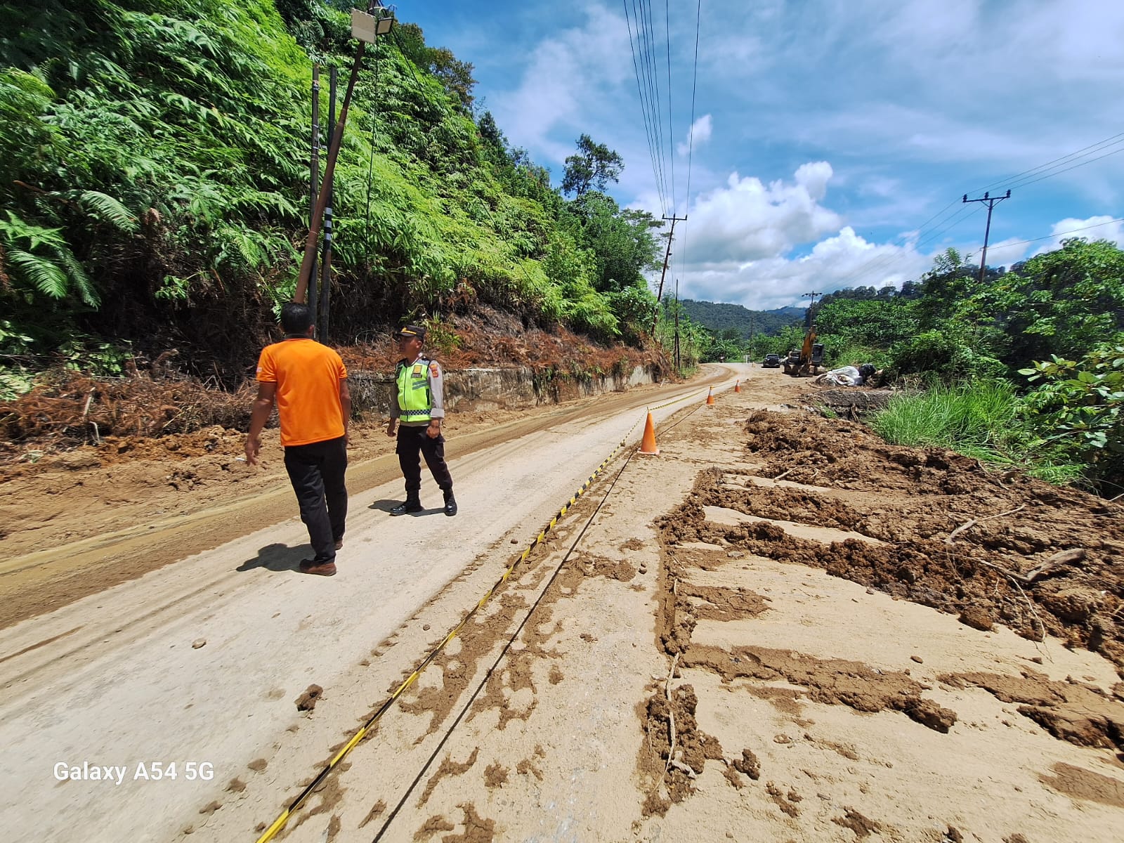 Kapolsek Batang Merangin IPTU. Julisman tiba di lokasi dan berupaya menghubungi berbagai pihak untuk membantu menyingkirkan matrial longsor yang menimbun badan jalan.